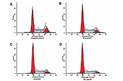 通过流式细胞术分析,发现随着左旋一叶萩碱浓度(0、12.5、25和50µmol/L)增加,细胞周期中G1期的细胞百分比逐渐增加(分别为42.13%、51.14%、59.82% 和 64.02%),同时观察到亚G1期细胞凋亡呈剂量依赖性增加,说明左旋一叶萩碱处理抑制了HL-60细胞周期的进展,诱导了细胞凋亡。
