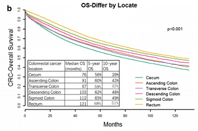 结果发现,不同部位的结直肠癌预后存在显著差异,总体趋势是距离肛门越近,患者生存时间越长。同时,不同部位的结直肠癌在基因和共表达对方面存在差异,研究列出了112个mRNA和26个lncRNA的表达差异,还发现9个差异表达基因与预后相关 。