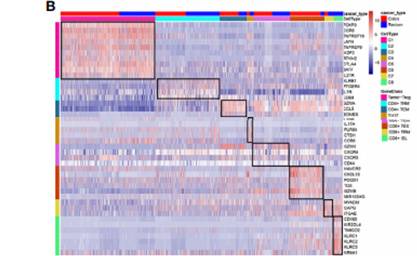 结肠癌和直肠癌的差异:结肠癌和直肠癌在肿瘤浸润T细胞的组成上存在差异,直肠癌中有肿瘤浸润CD8+IEL细胞,而结肠癌中没有;结肠癌外周血中有CD8+TN细胞,直肠癌中则无。且二者T细胞的基因表达模式也有所不同。这些差异为两种癌症的免疫治疗提供了潜在的细胞和分子靶点。