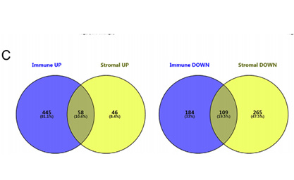 差异基因及相关细胞基因筛选:研究共鉴定出478个高、低基质评分差异表达基因(DEGs)和796个高、低免疫评分DEGs,其中167个重叠基因涉及离子跨膜运输等功能。还确定了39个CD4+ T细胞相关基因和78个CD8+T细胞相关基因,14个基因与乳腺癌患者预后显著相关,如MUC2。