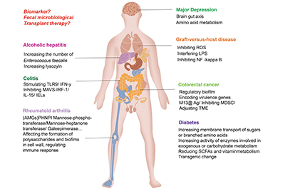 这项研究通过综合分析相关文献,阐述了肠道噬菌体与细菌的相互作用关系,以及它们在多种人类疾病发生发展中的作用,并探讨了噬菌体在疾病治疗中的应用。