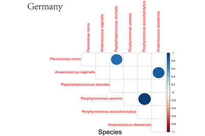 不同区域肠道菌群差异:研究发现,不同区域的肠道细菌群落组成存在差异,不同国家CRC患者的差异肠道细菌也不一致,但在物种水平上,所有国家都存在一些共同的细菌,如口腔消化链球菌和具核梭杆菌。此外,口腔消化链球菌在不同区域都与其他细菌存在相关性,且在属水平上,消化链球菌也与其他细菌有关联 。
