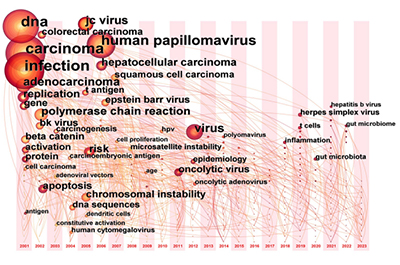 这项研究运用CiteSpace文献计量分析工具,对Web of Science核心数据库中2001-2023年有关结直肠癌(CRC)与肠道病毒关系的文献进行可视化分析,旨在探索该领域的研究热点和趋势。